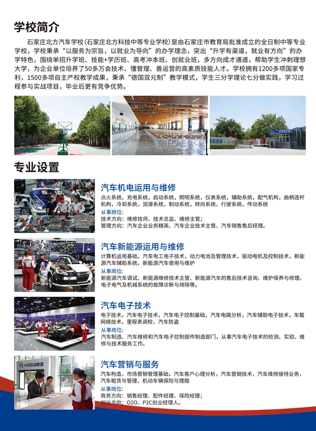 张家口初中毕业生学汽修专业、汽车美容专业:石家庄北方汽修学校招生简章