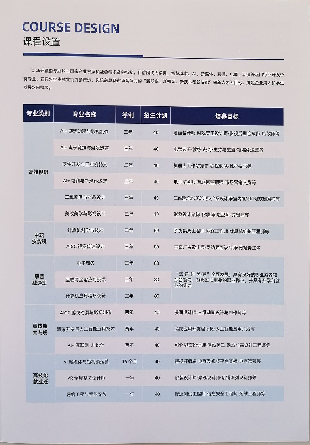 是一所专业的互联网职业教育院校,现开设VR传媒与电竞运营、5G网络信息安全工程师、新电商运营与财务管理、UI产品交互设计师、影视动漫游戏设计、互联网+影视编导、APP软件开发工程师、航空轨道与智慧交通等互联网+相关专业课程,学校集实战教学、企业化实训、职业素质培训、创业指导等于一体,全方位系统培养学生专业技能及职业素养,学生毕业后能够获得企业的认可和好评。