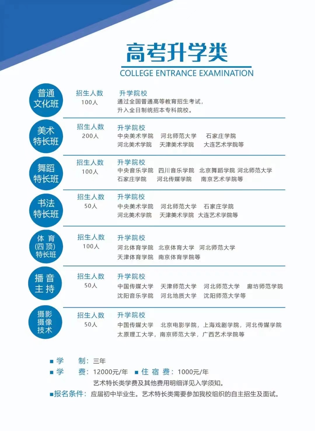 服务项目:张家口中专招生,张家口技工学校招生,张家口初三毕业生升学,张家口单招培训,张家口大学生培训,单招落榜生,高考滑档生,高三集训